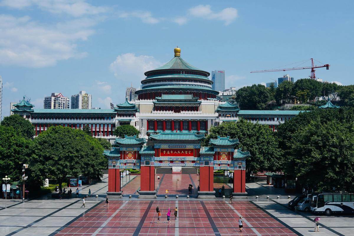 Begin your exploration of Chongqing with a morning visit to the magnificent Great Hall of the People, a grand architectural landmark often compared to Beijing’s Temple of Heaven. Suivant, witness the city’s unique verticality at Liziba Station, famous for the iconic light-rail train that runs directly through a residential building. Ensuite, step back in time with a stroll through the narrow streets and traditional stilt-houses of Ciqikou Ancient Town, a well-preserved historic riverside port. Following lunch and Salāt at Mosquée de Chongqing, your journey concludes with a seamless transfer back to Chengdu, a trip of approximately 300 km that typically takes around 5 heures.